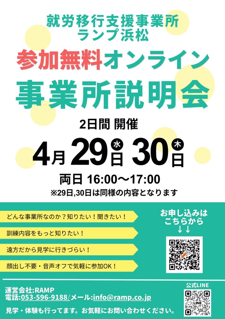【お知らせ】4/29・4/30 オンライン事業所説明会を開催します!